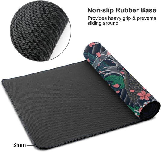 Japanese Wave and Koi Gaming Mouse Pad XL, Extended Large Full Desk Mousepad 31.5 X 11.8 Inch, Big Mouse Pad with Stitched Edge, Non-Slip Long Computer Keyboard Mat for Office & Home by